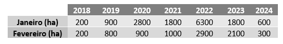 Analisando mensalmente, é possível inferir que Rondônia tanto nos meses de janeiro, como fevereiro de 2024, apresentou redução expressiva do desmatamento captado pelo sistema de alertas do Imazon.