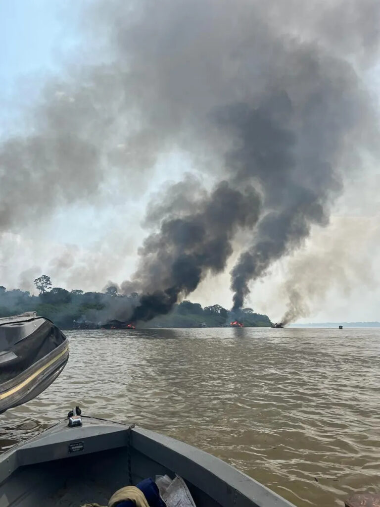 Ainda conforme informações da PF, cada balsa de garimpo emite cerca de quatro toneladas de poluentes na queima de 1 mil litros de combustíveis por semana. Com relação ao mercúrio, a contaminação é de meio litro, por semana, despejado na natureza.
