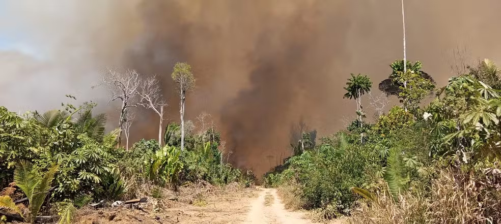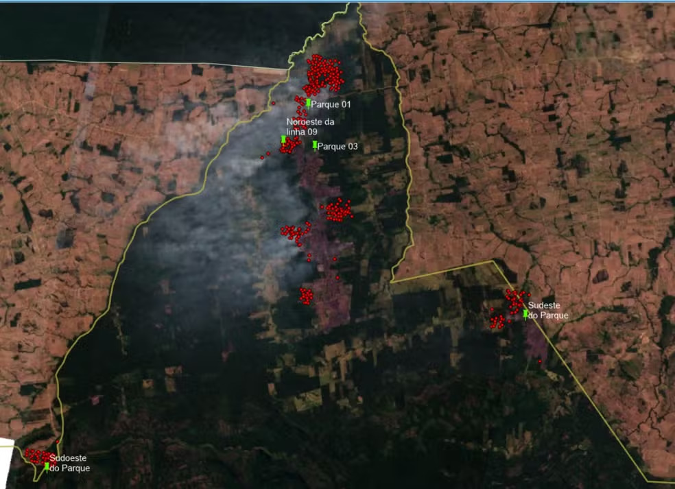Imagens de satélite e aéreas mostram a dimensão da fumaça e das chamas e os pontos de foco do fogo. Segundo Prevfogo, combate ao incêndio é dificultado pelo baixo efetivo e falta de apoio aéreo.